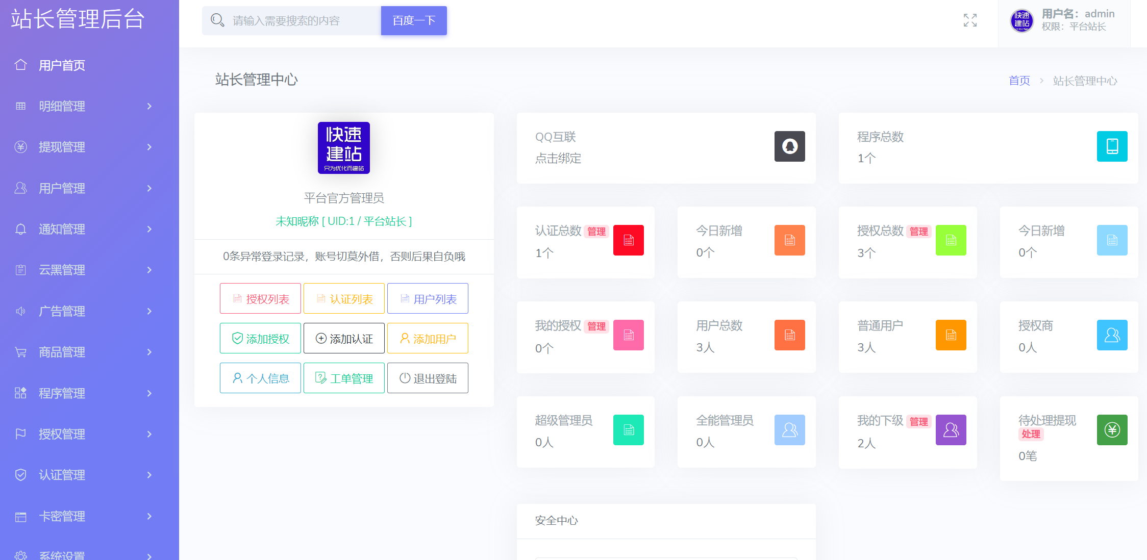该授权系统支持多程序授权,云端添加用户授权和卡密兑换在线购买更换等多种功能。